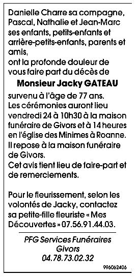 C’est avec une grande tristesse et une grande émotion que nous apprenons le décès de Jacky GATEAU, ancien président de notre association qu’il avait gérée et animée pendant une dizaine d’années (jusqu’en octobre 2013) avec professionnalisme et humanité.